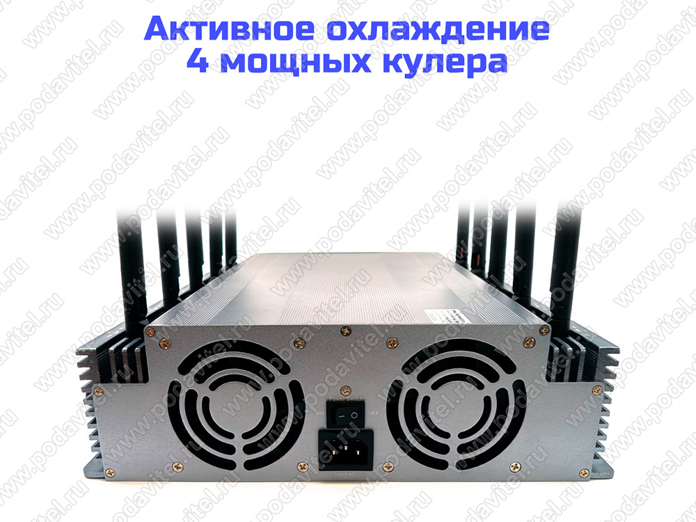 - Активное охлаждение. 4 мощных кулера встроены в корпус подавителя дронов и позволяют устройству работать продолжительное время без перегрева.